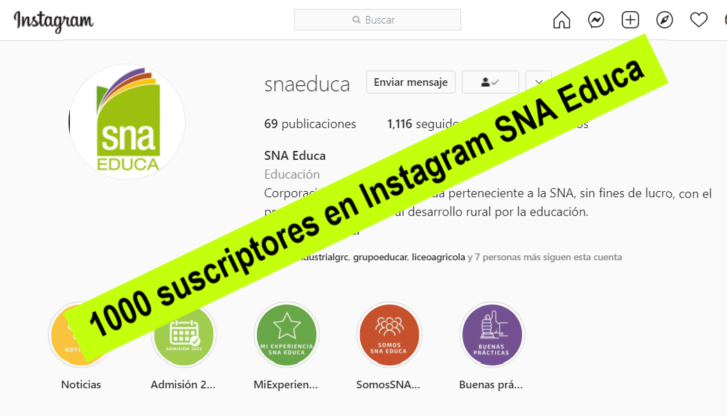¡Llegamos a los 1000 suscriptores en Instagram SNA Educa!!!!